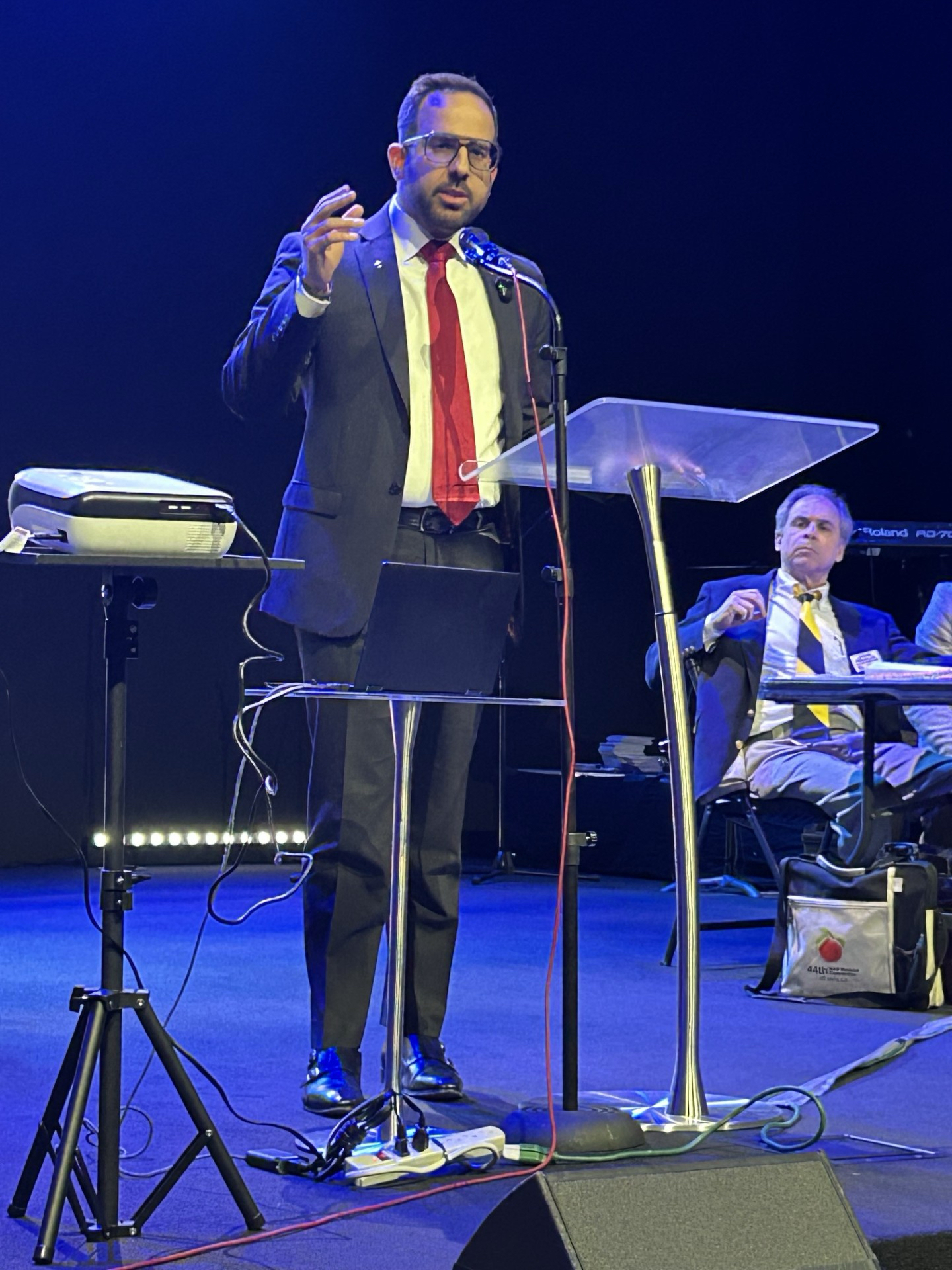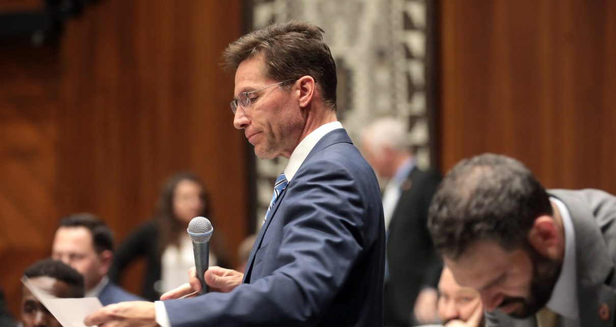 State Representative Joseph Chaplik speaking on the floor of the Arizona House of Representatives with Rep. Alex Kolodin in foreground, March 13, 2023 (Photo: Gage Skidmore)