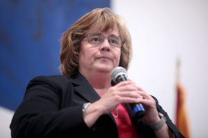 Gina Godbehere, Republican candidate for Maricopa County Attorney, speaking with attendees at a candidate forum hosted by the Arizona Legislative District 28 Republican Party at TYR Tactical in Peoria, Arizona, July 18, 2022. (Photo: Gage Skidmore)